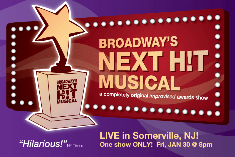 Every song is fresh. Every scene is new. Every night is different. It’s all improvised and it’s all funny. The hilarious Broadway’s Next H!T Musical is the only unscripted theatrical awards show. Master improvisers gather made up, hit song suggestions from the audience and create a spontaneous evening of music, humor, and laughter. The audience votes for their favorite song and watches as the cast turns it into a full blown improvised musical - complete with memorable characters, witty dialogue, and plot twists galore.